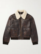 Vintage aviator styles inspire CELINE HOMME's jacket. Made from shearling, it has a rugged hide exterior and a soft pile underside that extends onto the collar. Ribbed trims define the relaxed shape.